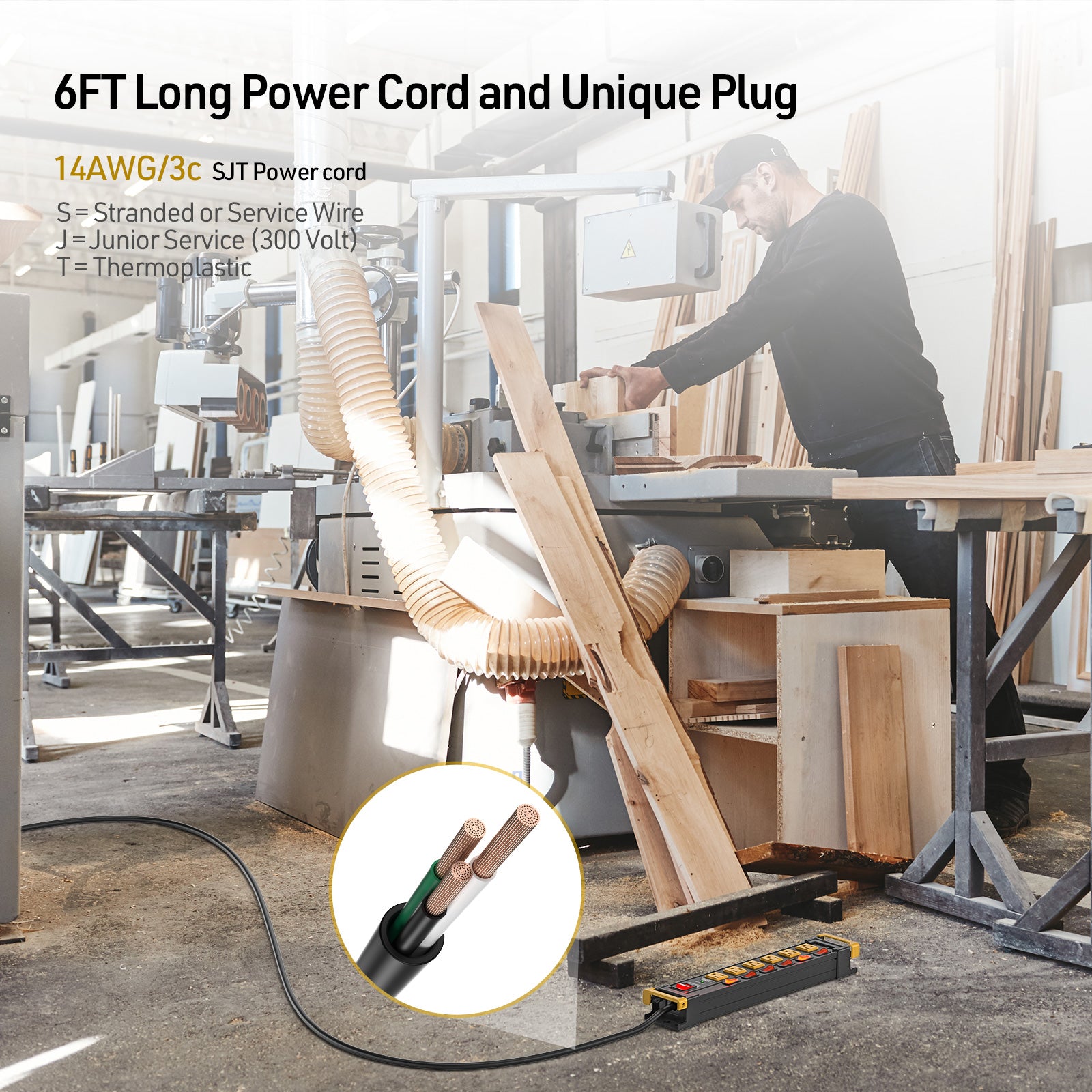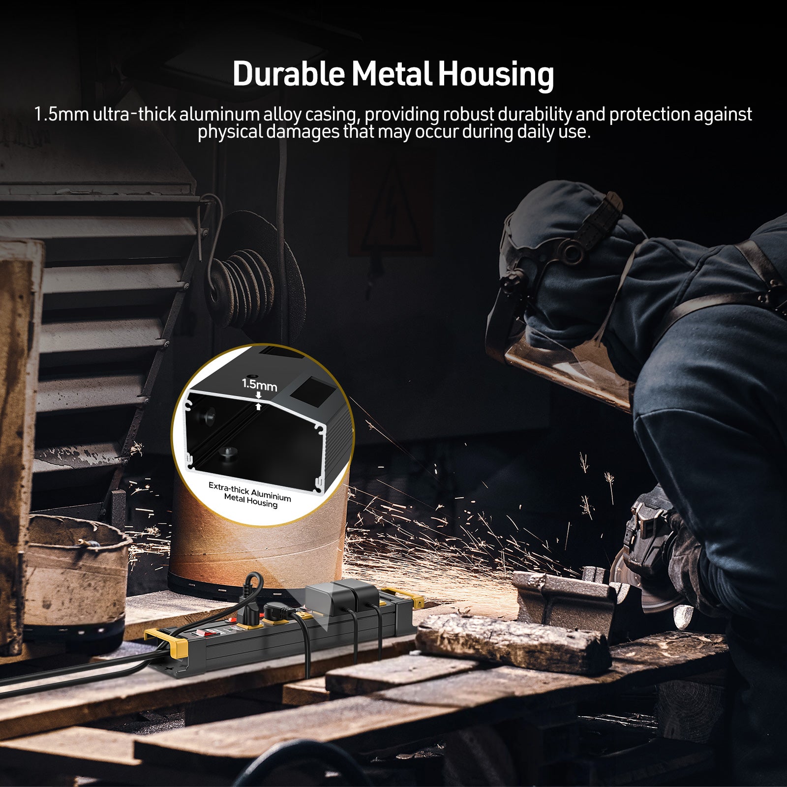 This power strip includes 6 individual switches and a master switch. Turn devices on/off individually. It offers 1020 Joules of protection against surges, spikes, or outages. Keep your tech safe with reliable switching. The durable metal aluminium construction ensures longevity. 🛠️
